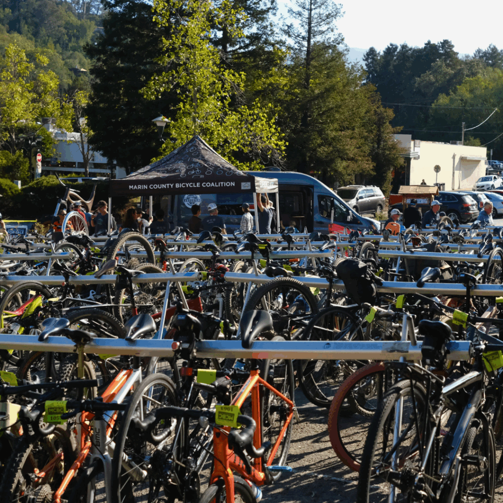 Making Marin a greener, healthier, and more bike-friendly place – one parked bike at a time. MCBC’s Valet Bike Parking is a secure service that encourages people to bike instead of drive to community events, helping reduce car traffic, emissions, and parking headaches.